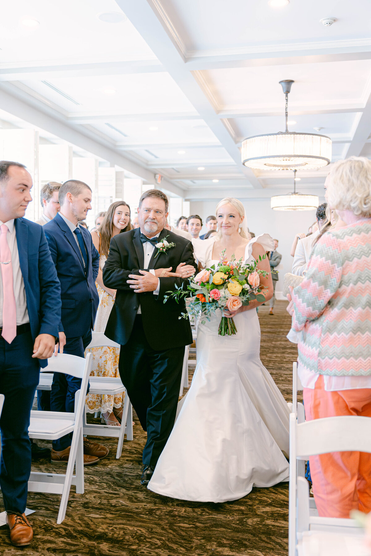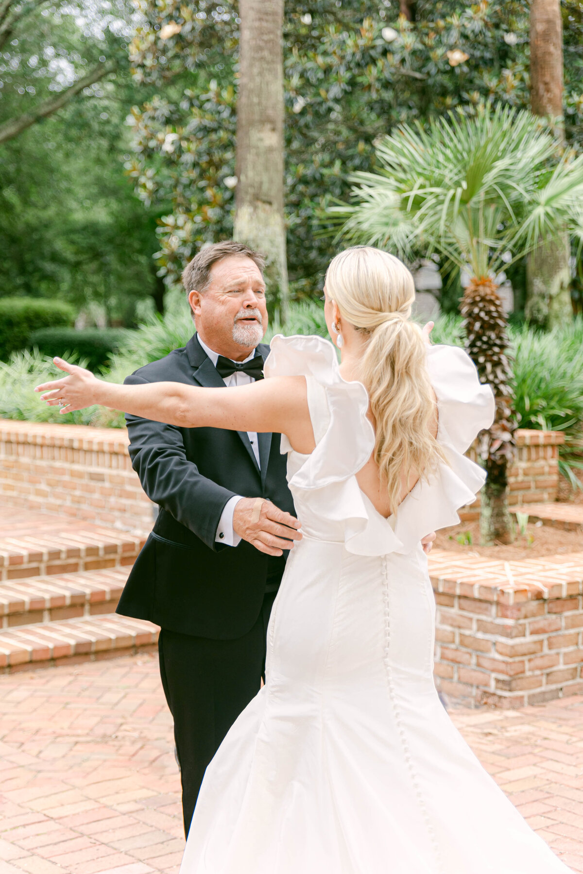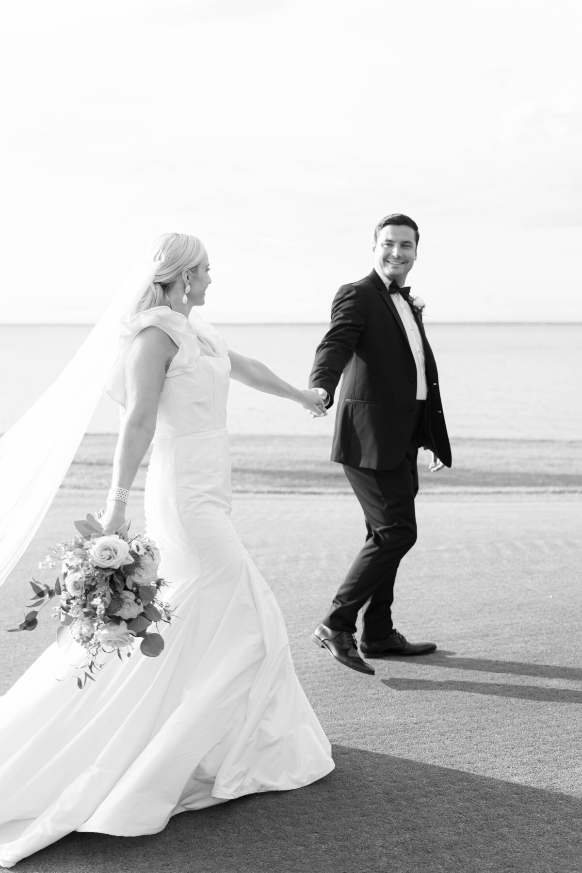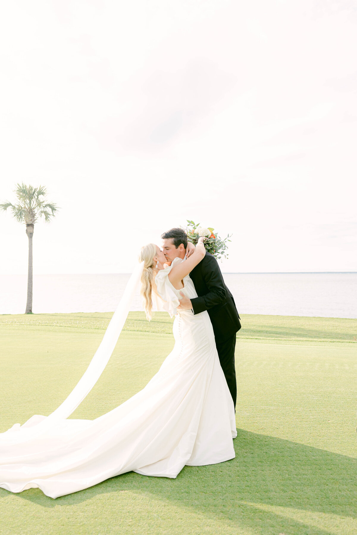 Sara Beth & CJ’s wedding at The Grande Sandestin was a perfect blend of classic style and high-end flair. Sara Beth’s vibrant florals and stunning dress, with its dramatic ruffle sleeves, added an elegant touch to their summer celebration. Their couple’s portraits, captured at two breathtaking locations—one with towering white columns and the other on a golf course overlooking the bay—were nothing short of spectacular. The evening continued aboard a yacht, where they danced and mingled with family & friends under the stars. These two filled the day with laughter and were an absolute joy to photograph!